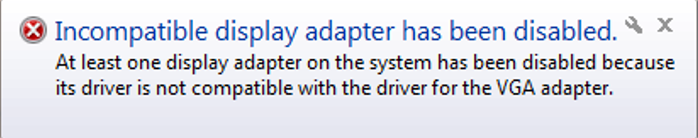 upon reboot of a client machine running CA Client Automation Remote Control Agent a Windows popup message stating Incompatible display adapter has been disabled .