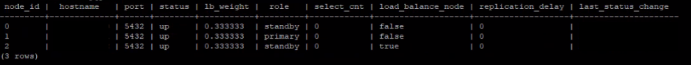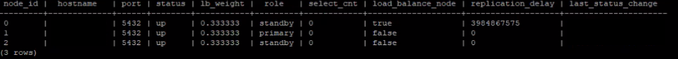 Confirm again with the poolnodes command that the replication delay is gone, e.g.:
