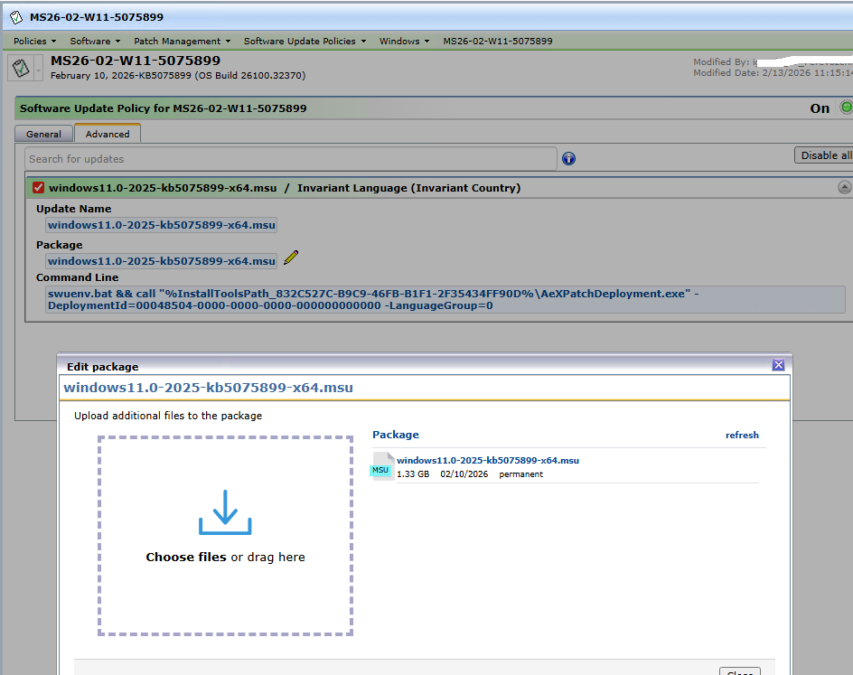 Note: The checkpoint updates involve large files, so we recommend cleaning up downloaded bulletins and distribution policies per our article, Simplified Steps to Clean up Unused Software Update (Patch) Packages off the Notification and Package Servers before hand to avoid unneeded downloads of updates. For those bulletins and policies you may want to retain, see the steps below for how to successfully update them to include the new checkpoint packages. See the last step to adjust the length of time endpoints will retain the packages.
