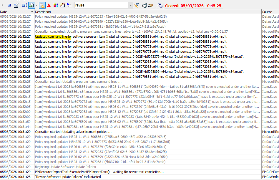 During PM Import there will be information in NS logs which Patch policies require command line update and which updates require and old check point update "kb5043080" to be downloaded