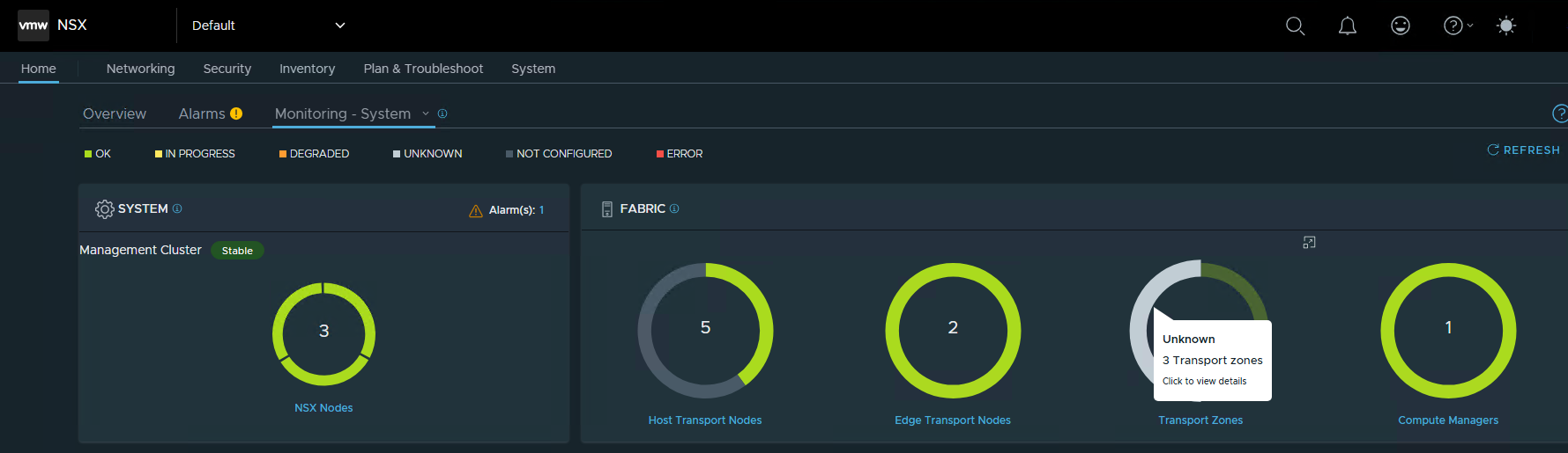 The dashboard and related heatmap API responses did not distinguish “unused” transport zones from zones with real health issues, so the dashboard rollup showed UNKNOWN counts for those objects.