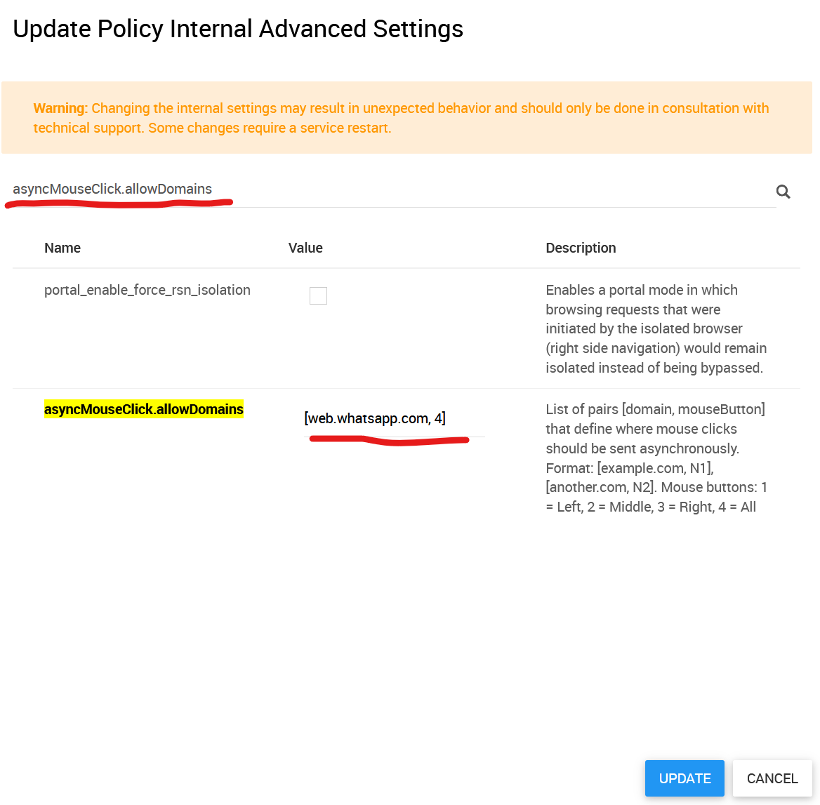4. Search for the option "asyncMouseClick.allowDomains".