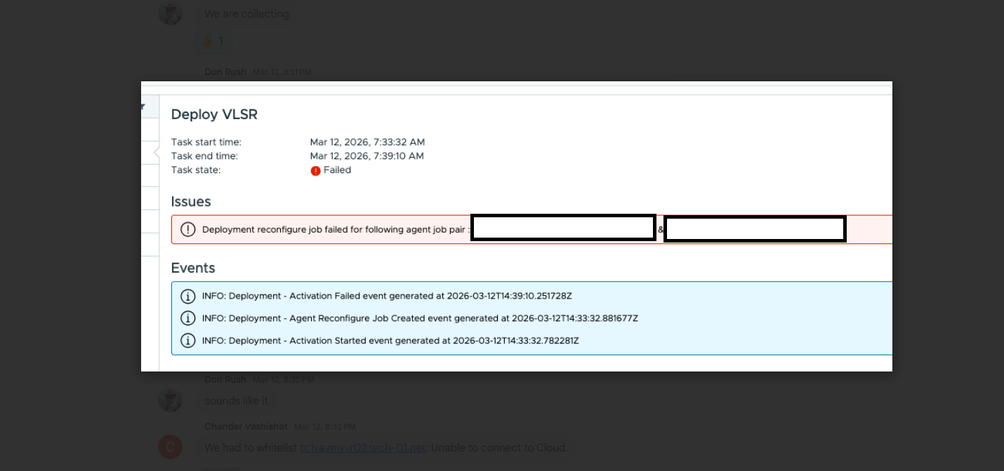 For a version 9.0.2 though the SRM IP/FQDN was whitelisted the VR IP was complaining for the connectivity issue with the error posted in the above screenshot.
