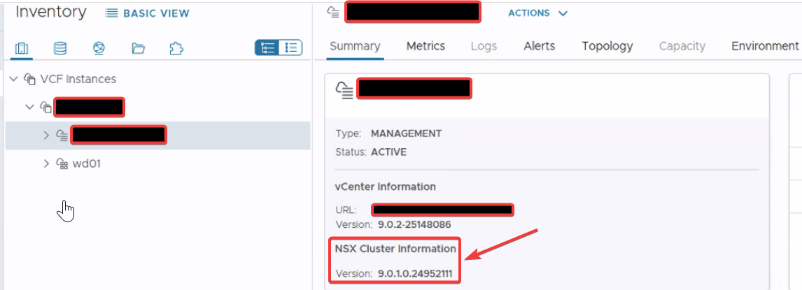 Once a successful collection cycle completes, the inventory will automatically refresh and display the updated NSX version.