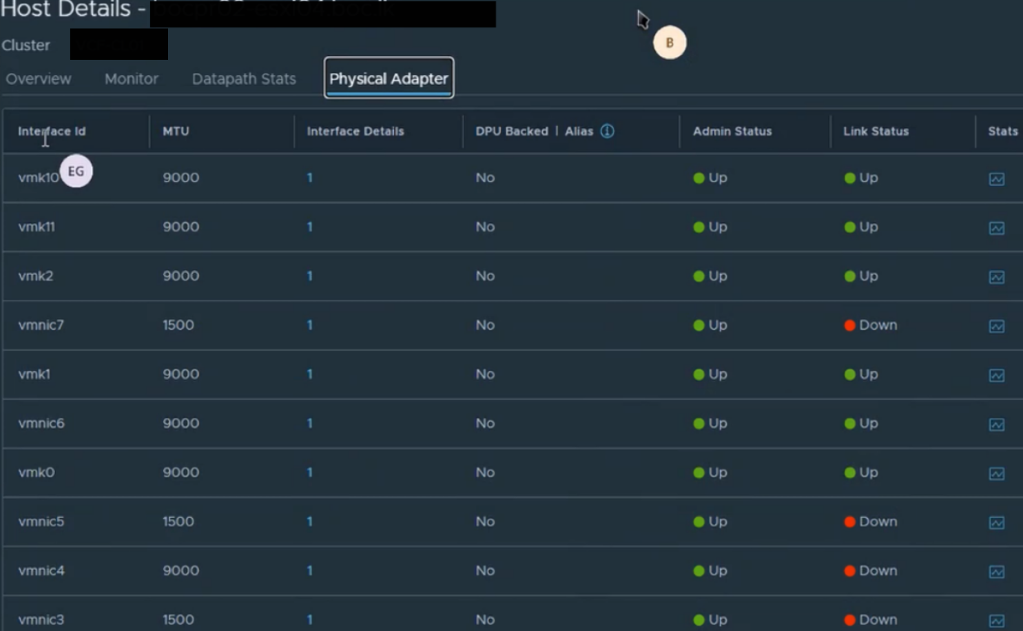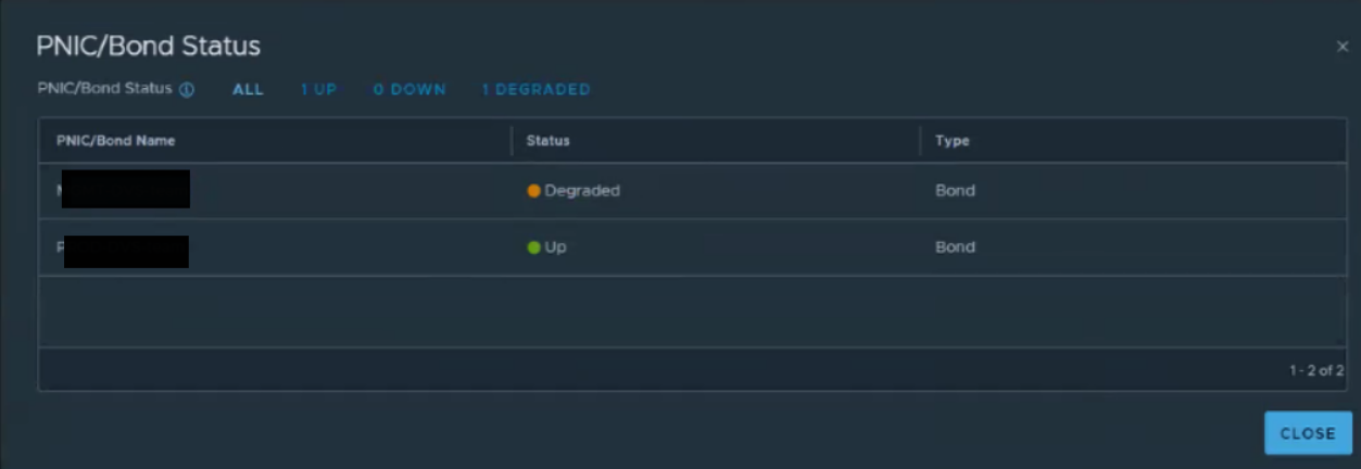 Connectivity Check: Physical uplinks associated with the host's Virtual Distributed Switch (VDS) or N-VDS are reported as Down.