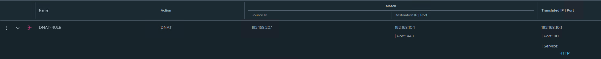 In VMware NSX, a Destination NAT (DNAT) rule is configured on a Tier-0 or Tier-1 gateway where the destination IP address and the translated IP address are identical, while only the destination port is translated(as shown below). Traffic matching this specific rule criteria fails to reach the intended destination server and is dropped or misrouted at the Edge node.