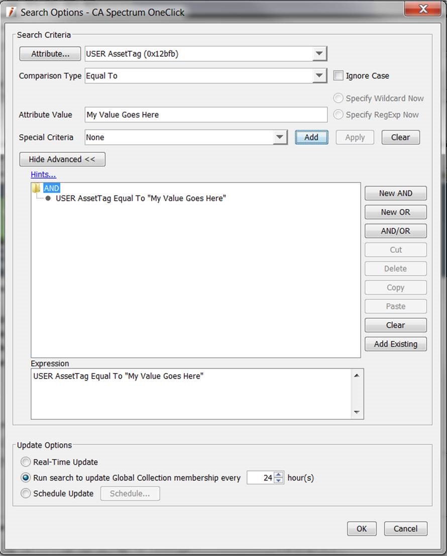 How to add Attributes as Search Criteria for Spectrum Global Collections