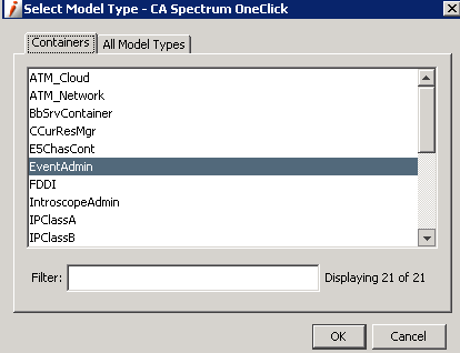 2. Select “EventAdmin” from the Container list and click on “OK”.