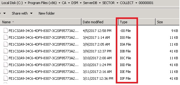 Agent Inventory is stored in the CA\DSM\ServerDB\Sector\Collect\0000001 and 0000002 folders