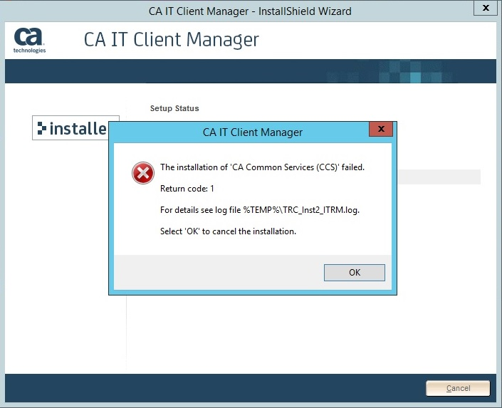 In %TEMP%\TRC_Inst2_ITRM.log following error appears :