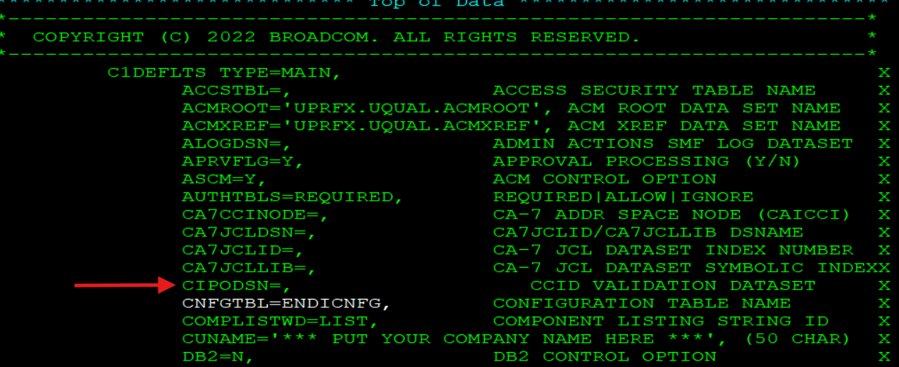 1. In the C1DEFLTS table change the CIPODSN= (ccid validation dataset name)