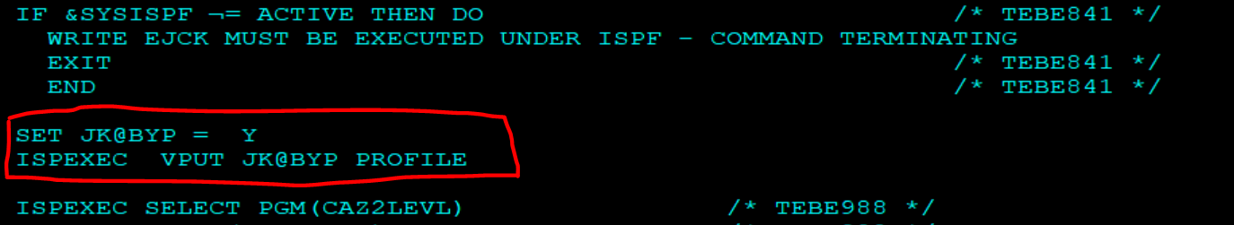 ADDRESS ISPEXEC "VPUT JK@BYP PROFILE"