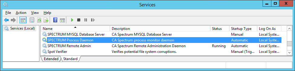 One possible root cause is because the CA Spectrum Process Daemon service is stopped.