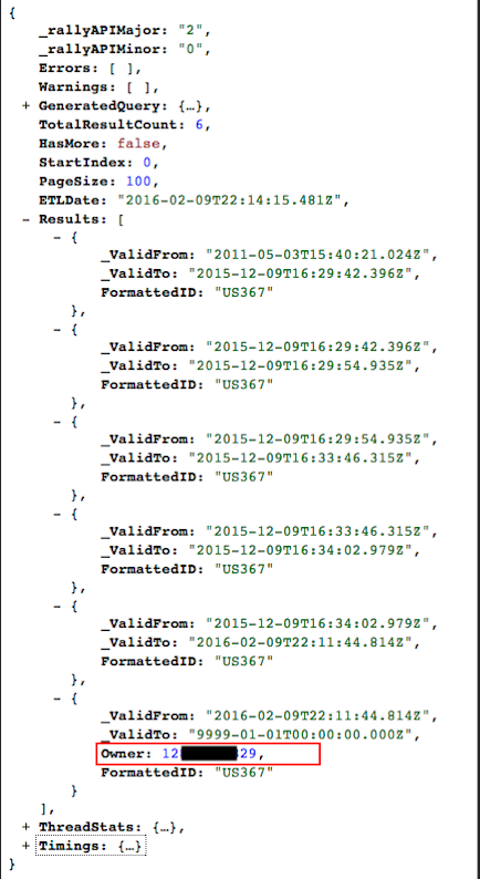 https://rally1.rallydev.com/analytics/v2.0/service/rally/workspace/<WORKSPACE_OID>/artifact/snapshot/query.js?find={"ObjectID":<OBJECT_ID>}&fields=["FormattedID","_ValidTo","_ValidFrom","Owner"]&removeUnauthorizedSnapshots=true