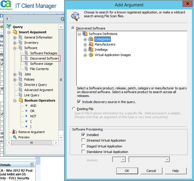 1- In ITCM Query Designer, under Software - Discovered Software, expand Categories - All.