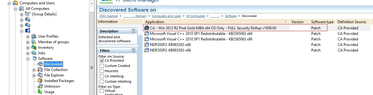 In Software Discovered folder of one machine some patches with Source 'CA Provided' have been discovered (like "CA - Win 2012 R2 Post Gold 64Bit x64 OS Only - FULL Security Rollup v1608.00") :