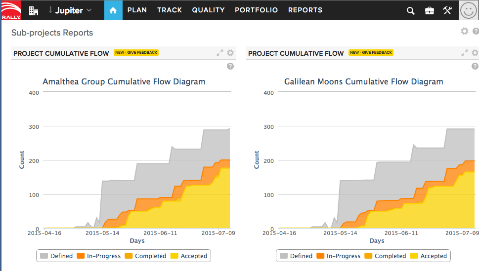 Find out how to create a Rally dashboard that will display multiple reports that show results for different projects within the same hierarchy.