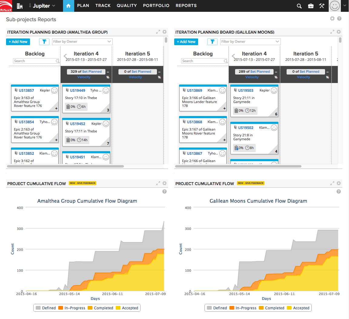 The same steps are repeated to add Iteration Planning Board for the same to child projects: