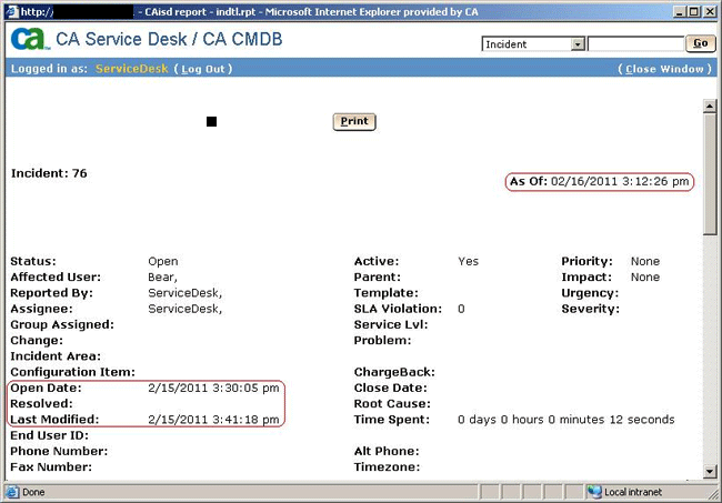 By default, in the Summary/Detail Report generated from the 'Reports' -> 'Summary' or 'Detail' menu option in the Service Desk web interface, the date format is MM/DD/YYYY.