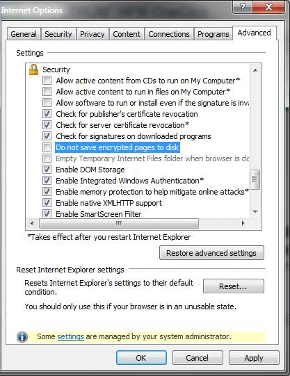 This is due to a Internet Explorer (IE) browser setting. The IE configuration change is to access Tools > Internet Options within IE and selected the Advanced tab. Then scroll to the Security options and ensure that 'Do not save encrypted pages to disk' is not checked (See screenshot below). Keep in mind that after changing this parameter, all IE windows will need to be closed. This will resolve the issue and the jnlp file will now open automatically when the "Start Console" button is selected.