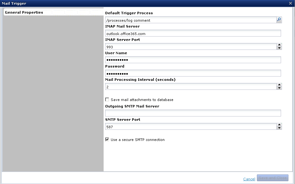 The feature currently supports IMAP only (POP3 is NOT supported). IT PAM polls the IMAP server at the port you configure in the "Mail Trigger Properties" (see the screen capture) for any new email at a polling interval defined as "Frequency".