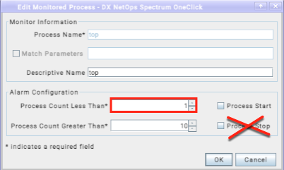 SPECTRUM Process Stop alarms unexpected after configuration of Process Monitor