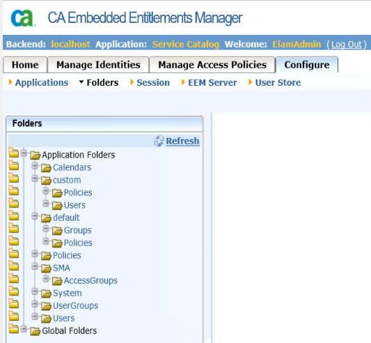 1. Log into the "Service Catalog" application in EEM as Eiamadmin User.