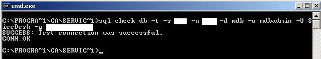 The sql_check_db.exe utility can be used to check the status of database connection for Service Desk.