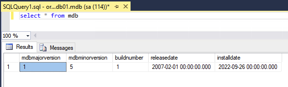 osql -S <server_name> -d mdb -E -e -b -Q "exit(select mdbmajorversion, mdbminorversion, buildnumber from mdb)"