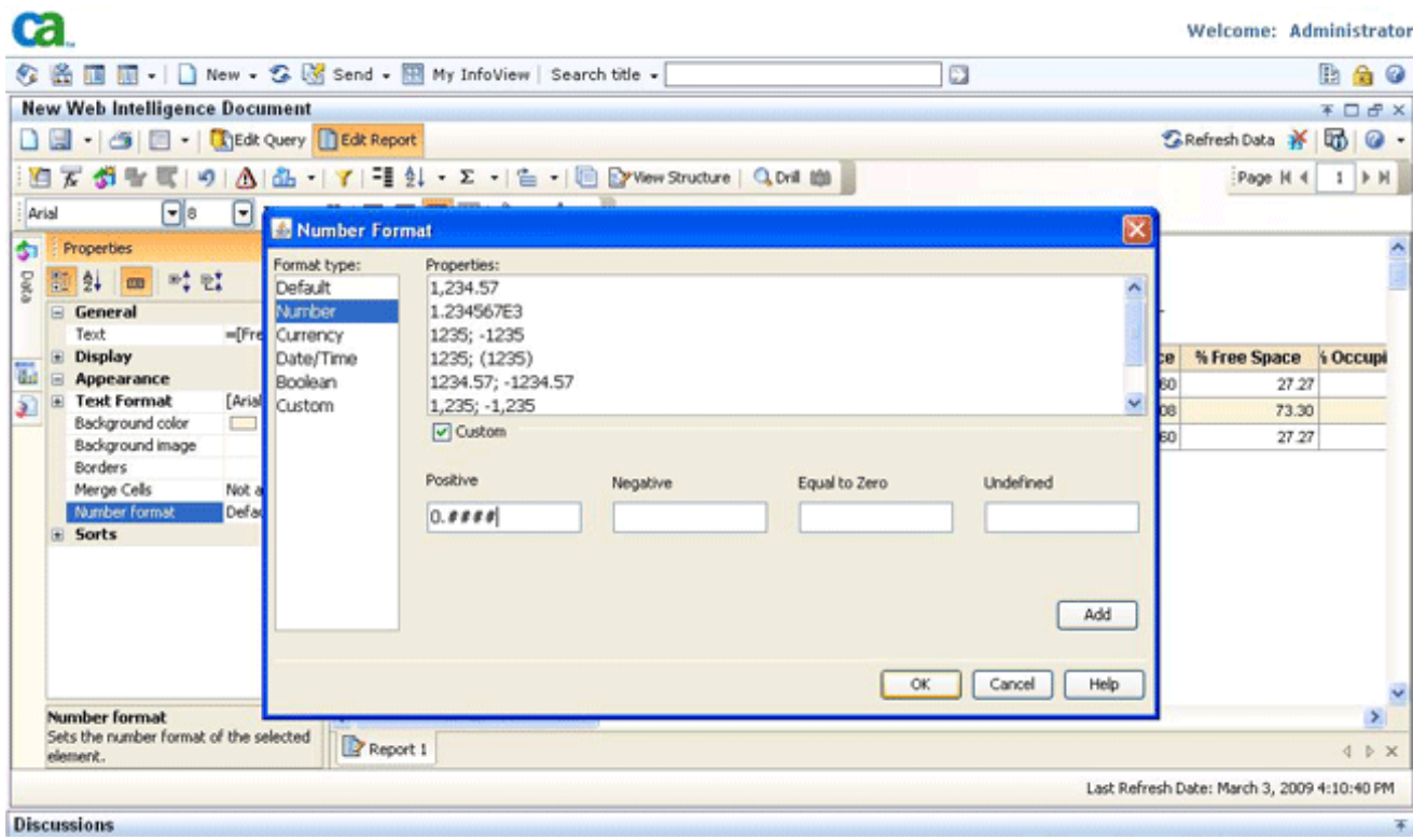 Click Number format from the left-side Properties pane. The Number Format dialog opens.
