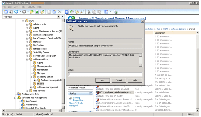 DSM->Software Delivery->Shared->NOS:NOS-less installation temporary directory