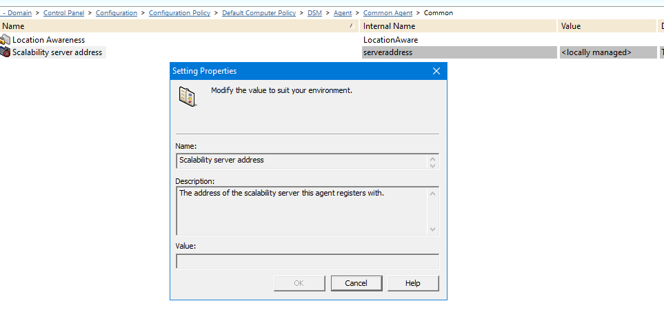 Important Note: If the Scalability Server the Agent was reporting to is no longer available, then the Configuration Policy method will not work. You will have to use the command line method (using a script/login script) to re-direct the agents to a new Scalability Server.