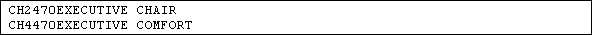 Notice the results include all of the executive chair product codes.