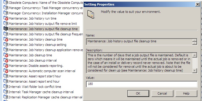 DSM/Software Delivery/Manager/Maintenance: Job history output file cleanup time = 180