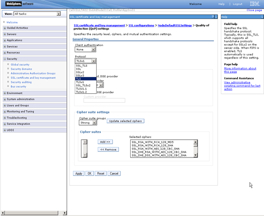NOTE: The Protocol label SSL_TLS will not disable SSLv3. This means protocol supports SSLv3, TLS 1.0, TLS 1.1 and TLS 1.2. So select TLS, TLSv1, TLSv1.1 or TLSv1.2 only. Please refer below screenshot for more info.
