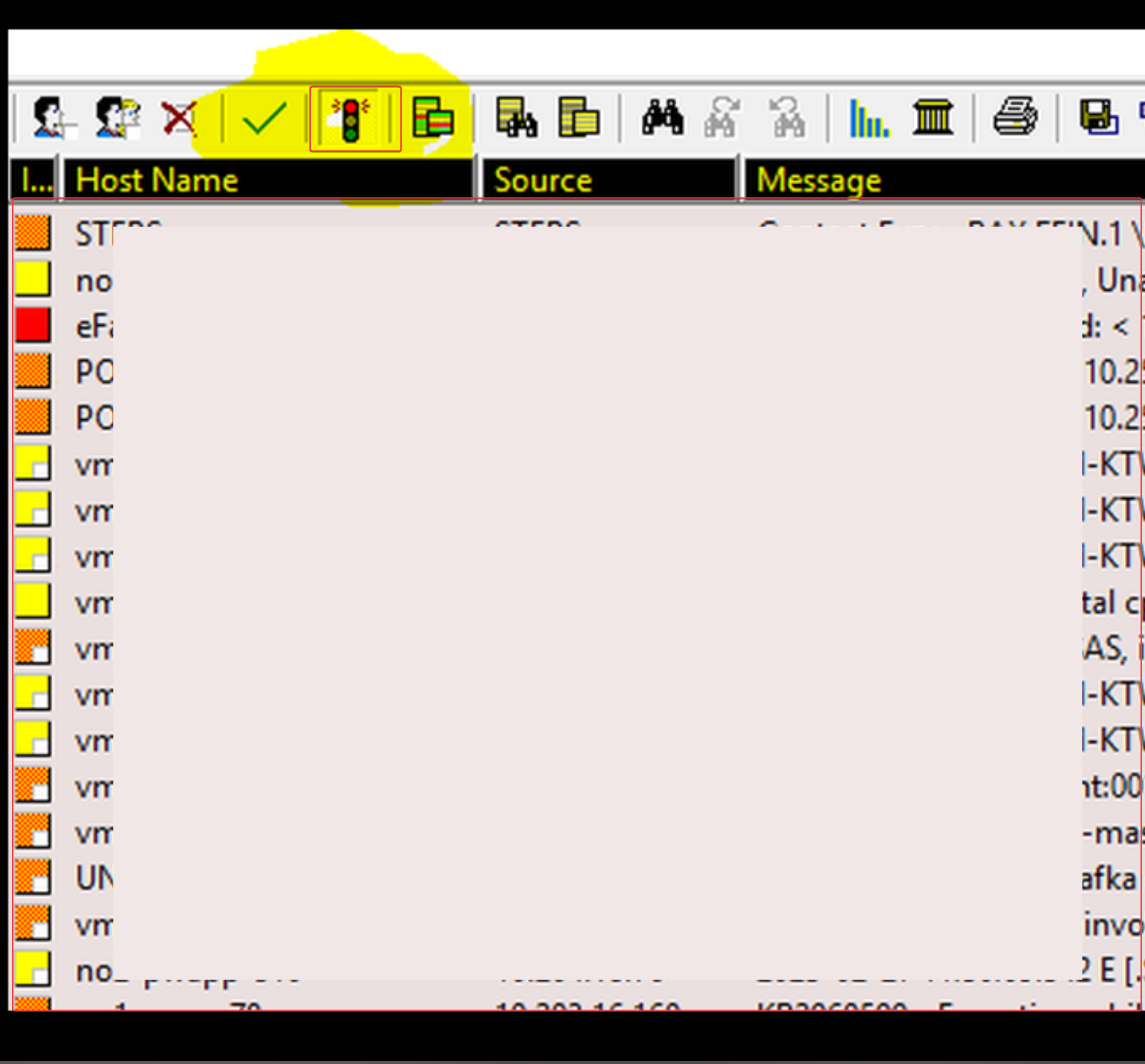 If that doesn't eliminate the problem, make sure you have un-clicked/deselected the 'Hold Events' button/icon on the top of the Infrastructure Manager window and the pink flashing bar will be eliminated. It can be a little confusing since both Hold buttons (Hold Events versus Hold Alarms) seem to appear alike but one is for alarms towards the bottom of the IM window - 'red light' illuminated in icon, and the other is for Events (messages) - 'yellow light' illuminated in icon.