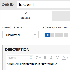 which created a defect where Description field did not include xml tags.