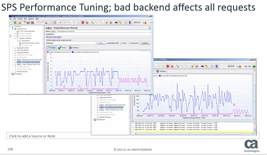 Obviously before that we've probably hit some limit, probably a 150 thread pool size in apache, or 600 or 1000 depending on what you have it set to. But the important thing is when the back-end server is down, the SPS is flooded with waiting requests, and we can't realistically (or meaningfully) hold open all of those requests for all of those retries.