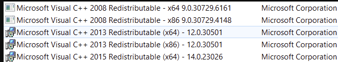 Please make sure you have all of these "Microsoft Visual C++ Redistributable":