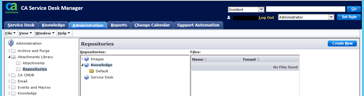 1. Log into the Service Desk Manager web interface as a user with the Administrator role and click on the Administration tab.