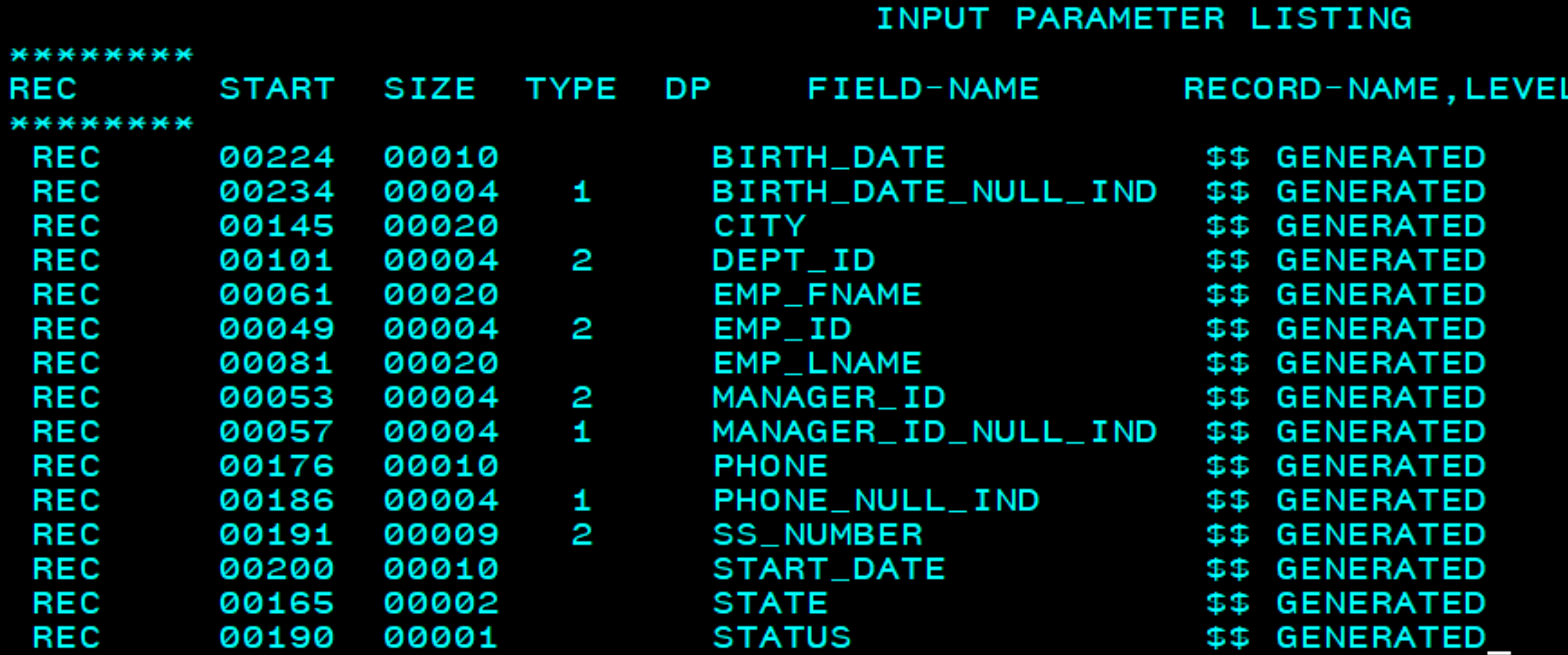 The generated REC cards will appear on the INPUT PARAMETER LISTING with the column names.