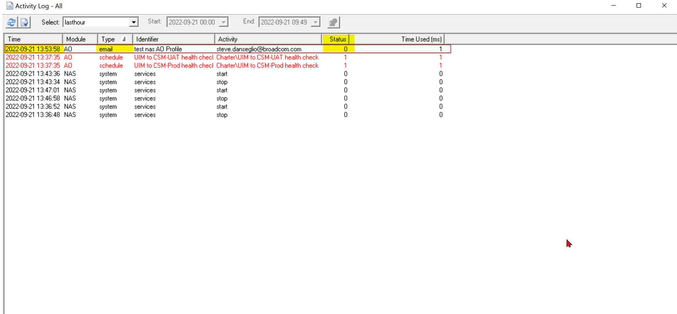 Sep 21 14:27:59:313 [12228] 3 nas: ExecEvent: Rule='test nas AO Profile' on nimid='XL34914280-56521' with ACTION:EMAIL, age:0s, status:OK