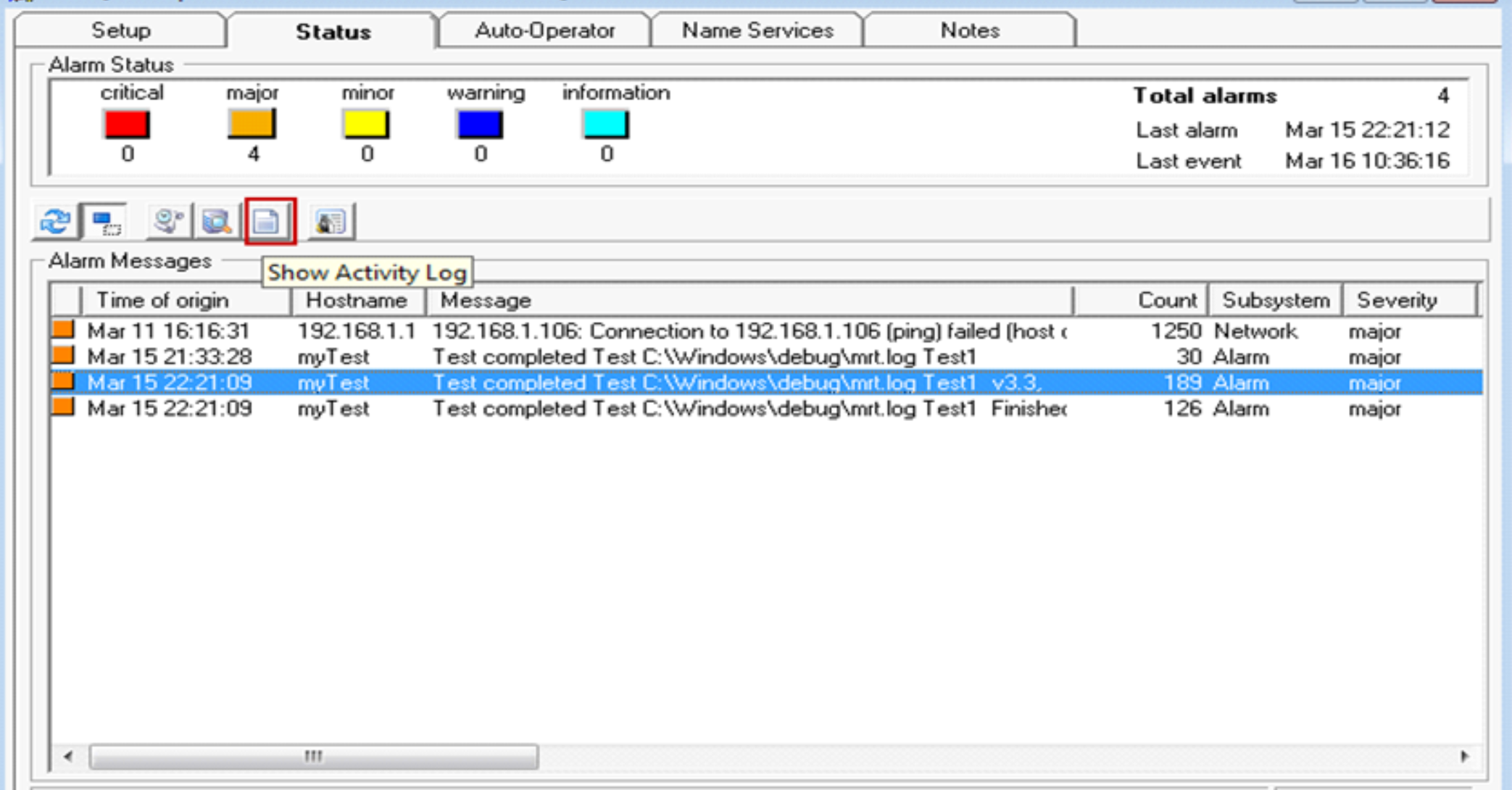 7. Check the 'Show Activity Log' icon on the nas Status Tab to view activities.
