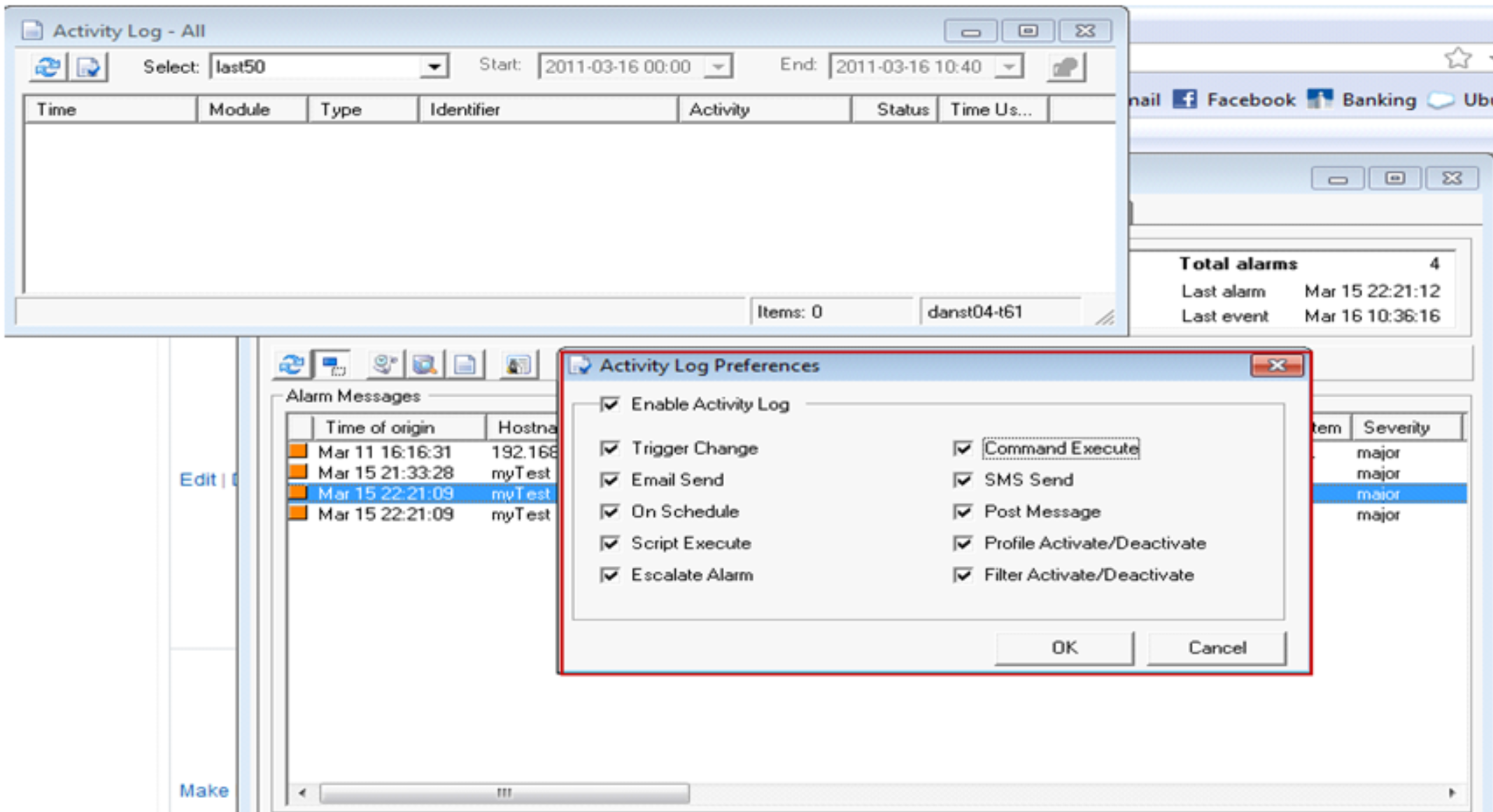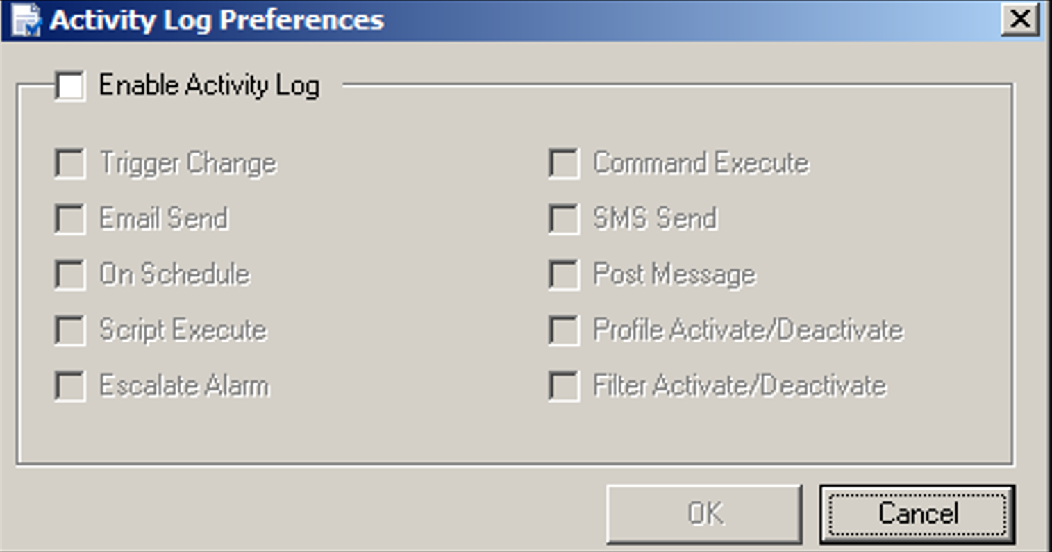 4. Enable logging by checking the Enable Activity Log checkbox, then all alarm activities that you wish to see the log entries for your specified period of time: