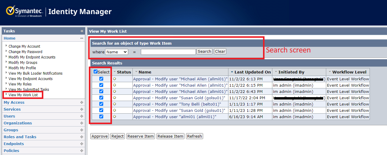 This document describes how to configure Identity Manager to approve or reject Work Items (approval items) in bulk using the "Home" > "View My Work List" task.