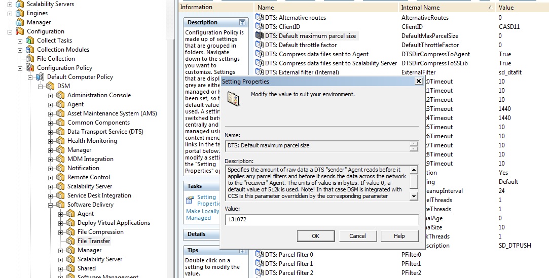 DSM/Software Delivery/File Transfer/DTS: Default maximum parcel size