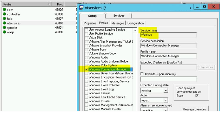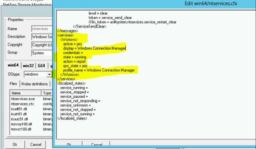 Created the ntservices.cfx file and also deployed on some servers however we don't see any of these services enabled when we open the ntservices probe deployed on the servers.