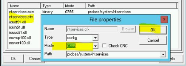 4. Change the configuration file (ntservices.cfx) properties to 0755.
