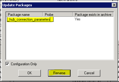 This will open the Update Packages dialogue for the hub probe with the Configure Only option selected: