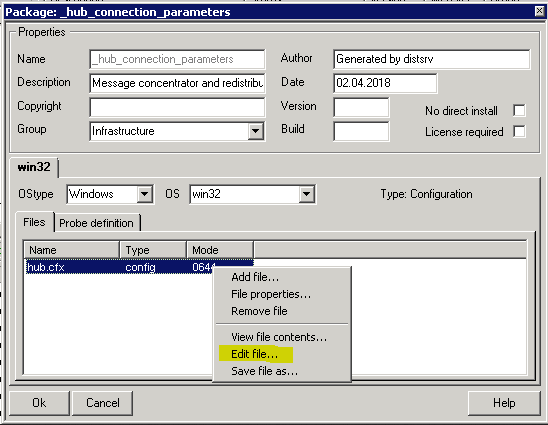 Select OK to save the hub.cfx changes, then select OK to save the hub Configuration only package.